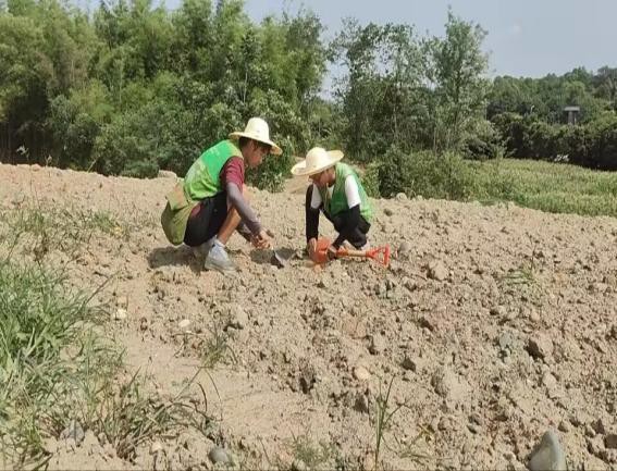21 日,團(tuán)隊成員們運用了現(xiàn)代農(nóng)業(yè)技術(shù),為當(dāng)?shù)叵蛉湛N植地進(jìn)行了人工除草和鋪設(shè)微灌帶等工作。近年來,隨著科技的不斷進(jìn)步,傳統(tǒng)農(nóng)業(yè)面臨著許多問題。干旱便是面臨眾多的問題之一。如何降低干旱帶來的影響、提高農(nóng)作物產(chǎn)量、減少勞動力成本、節(jié)約用水資源等問題愈發(fā)引起人們的關(guān)注。通過昨日調(diào)查研究得出牧馬山的土質(zhì)為沙土且偏干旱。因此,農(nóng)科小隊選擇將現(xiàn)代科技與傳統(tǒng)農(nóng)業(yè)相結(jié)合,為當(dāng)?shù)剞r(nóng)民帶來了一份奇特又有益的便利。在這次清理活動中,農(nóng)科小隊成員們們首先利用人工對向日葵種植地里的雜草進(jìn)行了徹底地清理。較大程度地減少后期雜草與向日葵爭搶水分和營養(yǎng),同時能夠疏松表土,減少地表徑流,增加土壤的滲透性,間接性提高向日葵的產(chǎn)量。接下來,在向日葵田中鋪設(shè)微灌帶成為接下來的重點工作。農(nóng)科小隊成員們對向日葵種植地進(jìn)行了微灌帶的鋪設(shè),將微灌技術(shù)應(yīng)用到向日葵種植中。微灌技術(shù)通過合理的水肥供應(yīng),提高了土壤肥力和作物產(chǎn)量。這一技術(shù)不僅能有效節(jié)約用水資源,還能減少施肥浪費和土壤污染問題。既緩解了缺水問題,也符合綠色生態(tài)種植。