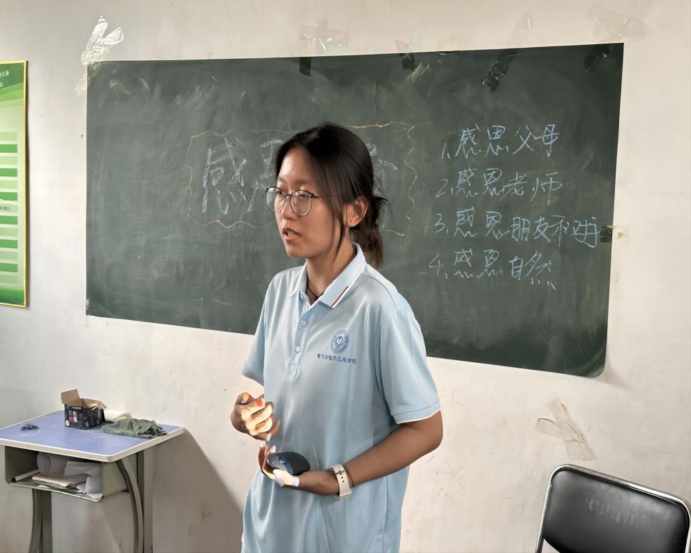 為了讓孩子們懂得感恩,擁有一顆感恩之心,弘揚中華民族傳統美德,7月21日上午,實踐團成員于棗莊市滕州市東郭鎮磨石山村開展以“學會感恩,以感恩予世界光華”為主題的教育活動,由實踐團成員張靖涵進行授課。