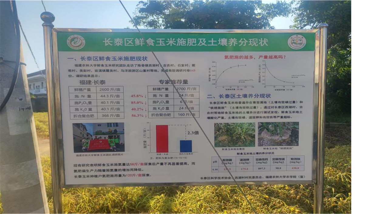 圖為長(zhǎng)泰區(qū)鮮食玉米施肥及土壤養(yǎng)分分析展板