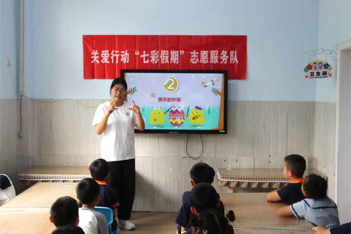 為了幫助孩子們初步了解貨幣,志愿服務隊開設財商小講堂活動,團隊成員們提前準備好了上課材料和PPT,志愿者王曉典作為小老師,采用講課+問答的方式向小朋友們介紹了貨幣的外觀、貨幣的種類以及作用等等,讓孩子們了解貨幣、交換、價值的基礎概念。在志愿者講解過程中,發現孩子們對于這些財商知識都有基本的正確的認知,小朋友們聽講十分認真,互動提問過程也非常輕松愉快。