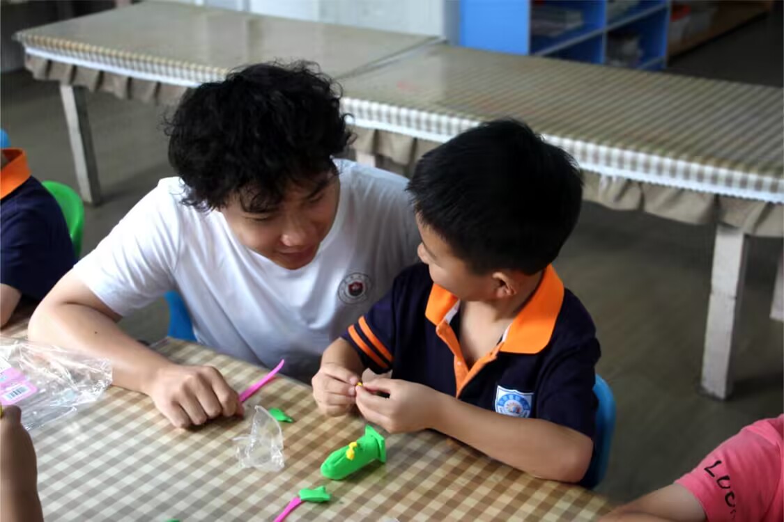 為培養孩子們動手動腦的能力,志愿服務隊特開展黏土手工課程。課程伊始,志愿者陳夢向大家介紹超輕黏土的特點并展示相關的手工作品,以此激發孩子們的創作興趣。接下來給大家分發手工材料,所有志愿者帶著孩子們一起動手捏黏土進行手工創作,一塊塊黏土煥發出全新的生命。成員們還鼓勵兩三個小朋友一起協作配合,共同創造出獨一無二的作品,培養團隊合作能力,并幫助孩子們與自己的手工作品合影留念。