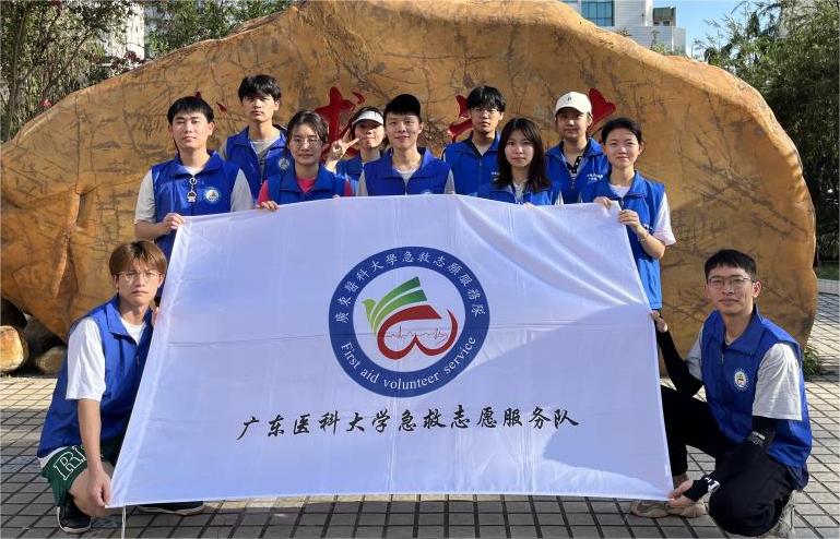 圖為急救隊隊員在廣東醫科大學校訓石前的合影(杜頌文 供圖)