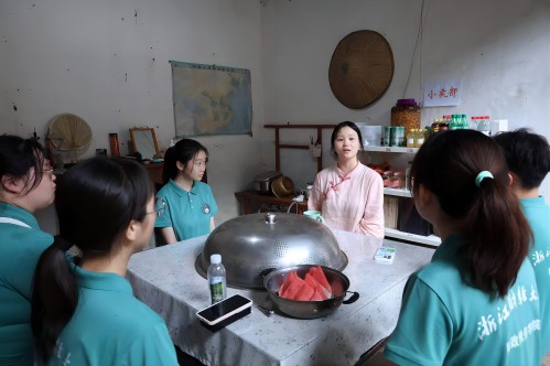 在充滿鄉土氣息的民宿中,實踐服務團采訪了徐露露女士,了解到她之所以選擇返鄉創業,走向熟悉又陌生的田野,放棄留在大城市發展的原因。徐露露女士用腳沾泥土的力度,傳遞情系民生的溫暖令實踐服務團的成員們深感敬佩,她說道:“未來,我將繼續投身鄉村振興大舞臺,搭建更多青創平臺,鼓勵更多有夢青年來鄉村追夢!”