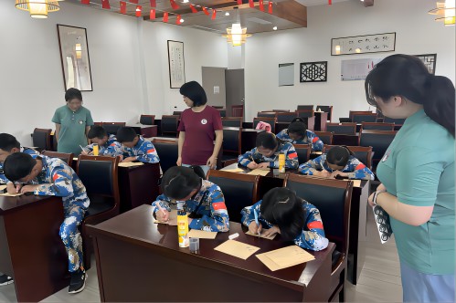 在講課之余實踐服務團組織小朋友們發揮動手能力,用手中的筆,在信紙上寫下對未來的寄語、對非遺傳承以及鄉村未來發展的展望,并鼓勵小朋友們發揮想象力在信紙上畫出自己心目中未來的黃塘村。