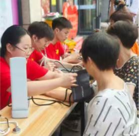 圖為實踐隊成員為小區居民測量血壓。