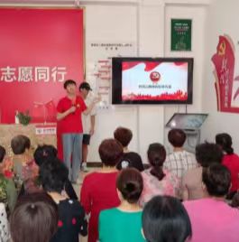 圖為實踐隊隊長郭旭為小區居民宣講井岡山精神。