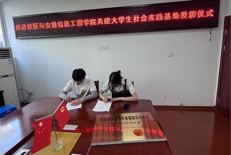 圖為安信工智能車科普實踐團與前進社區共建大學生社會實踐基地