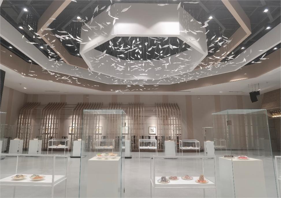 03大堂展廳 一道道精美的菜品置于展柜中,我們在王總的介紹中了解到許多菜品制作的過程,例如傳統名菜爆炒腰花,這道菜在制作過程上不僅考驗廚房師傅的刀工,還要注意炒制過程中的火候的控制,一道成功的爆炒腰花,既有穩重的刀法帶來的視覺上的沖擊,還有猛火爆炒帶來的味覺上的享受,一快一慢,在時間的交替流失中,制成一道傳統的美味。栩栩如生的博山菜展品,配上王總精彩的講解,讓我們實踐小隊的成員都不禁流出了口水,浮想聯翩。這是屬于博山菜的魅力,展示出了博山作為魯菜發源地的實力,讓我們對傳統博山菜更加神往。