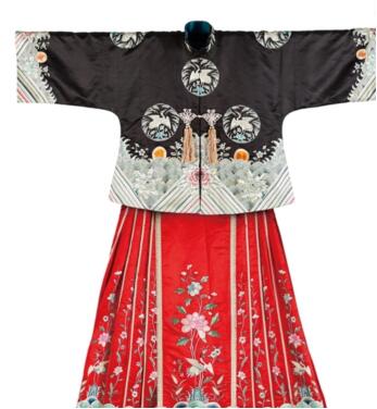 (圖為絲綢博物館陳列的元色彩繡團鶴對襟女禮服 卓雨晴攝)
