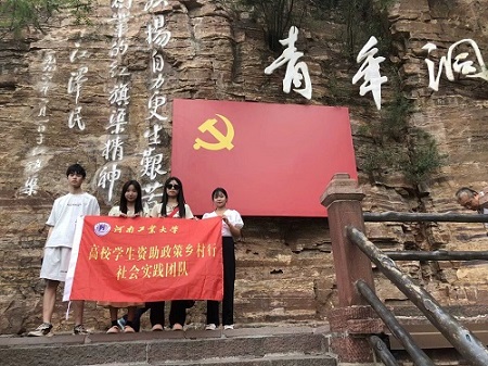 紅旗渠精神實踐團全體成員共赴修渠之路,本次實踐分為參觀青年洞、分水閘、紅旗渠紀念館和拜訪修渠老人。青年洞景區,是以紅旗渠的代表性工程——青年洞為主景,以太行山為依托的融人文景觀和自然景觀為一體的綜合性景區,是紅旗渠艱苦奮斗精神的實景體驗場所。因參加鑿洞的突擊隊是從全縣民工中抽調出來的300名優秀青年,故取名叫“青年洞”,洞名由郭沫若先生親筆題寫。分水閘以上是長102米、高10米的防洪矩形明渠,再上是長346米的分水嶺雙孔隧洞。位于分水閘的紅旗渠紀念館建筑面積6300平方米,展覽內容分為五個部分,有千年旱魔,世代抗爭;紅旗引領,創造奇跡;英雄人民,太行豐碑等。實踐團成員結束參觀后,加深了對紅旗渠精神的感悟。拜訪修渠老人,聽老人談到黨的領導、修渠的艱苦、人民的團結,結合參觀,成員們對當年的修渠者更為敬佩、對紅旗渠精神的理解更加深刻。