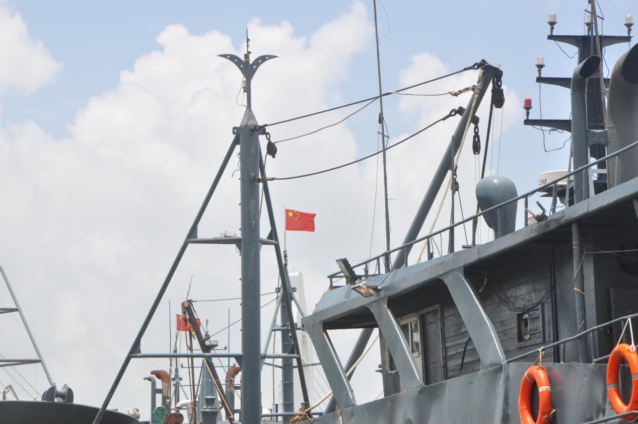 圖為南港碼頭漁船上的國旗在迎風(fēng)飄揚(yáng)(黃靜軒供圖)