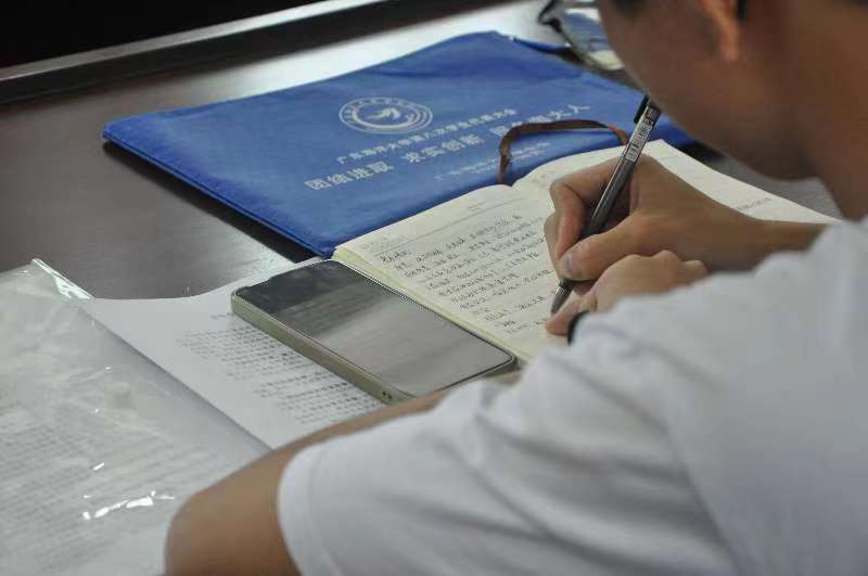 圖為筑夢南漁隊(duì)隊(duì)員對本次會議的相關(guān)問題進(jìn)行記錄(黃靜軒供圖)
