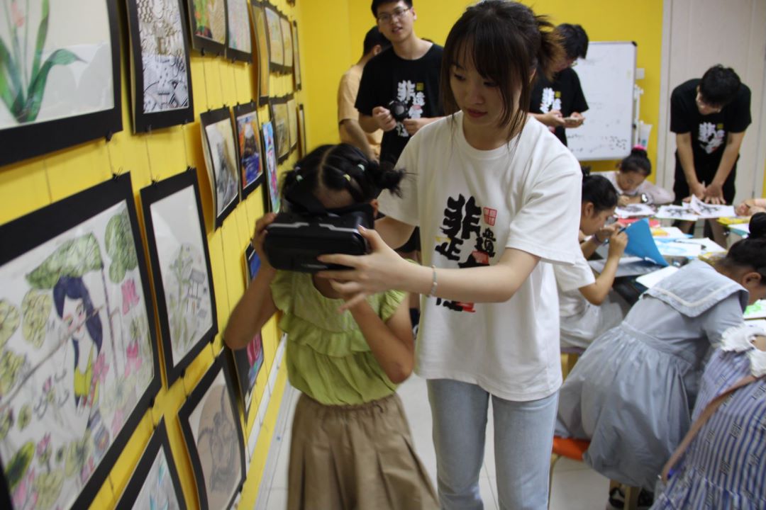 圖為在團隊成員的幫助下小朋友體驗VR刻紙 張杰 攝