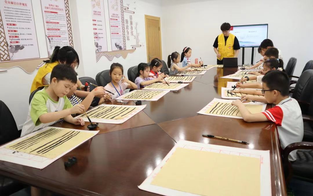 在課程安排上,“童心護衛隊”的成員均衡設置,互相配合,高效溝通。其中,太極拳課程強身健體,書法課課程怡情養性,都為宣傳中國優秀傳統文化添力;荷花衍紙、亞運面塑課程與杭州緊密聯系,鍛煉了小朋友們的創新能力與動手能力;運動會和光影劇的設置為夏令營增添歡聲笑語。