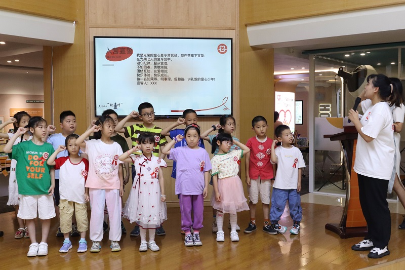 7月5日的上午,帶著歡快與激動的心情,童心護衛隊的成員們與兄弟隊的成員們一起協助了“小候鳥夏令營”開營儀式。在各位領導發表祝辭之后,成員們表演了自己精心準備的“開心往前飛”合唱節目和“喜羊羊”舞蹈節目,極大地調動了現場的氣氛。在開營儀式上,我們同時也向小朋友們展示了接下來一周的課表,由童心護衛隊出遠門策劃備課,通過“非遺手工”“喜迎亞運”“職業體驗”“創意美育”等諸多寓意豐富的課程給小候鳥們提供了豐富、充實、有意義的暑期看護。