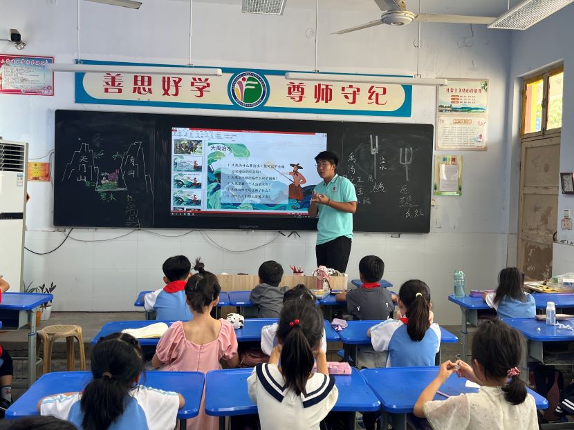 在“人文典故”板塊,豫才支教隊成員講述了盤古開天和大禹治水兩則經典傳說,為同學們講解了源于中華文明的創世神話和大禹治水所代表的英雄人物的美德和精神,使其深刻體會了古人克服巨大困難所體現的毅力和智慧。