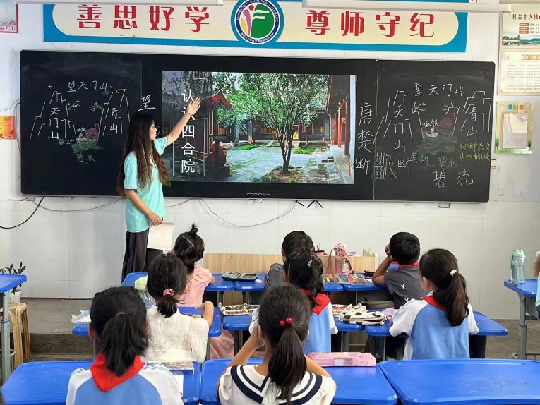 (圖為豫才支教隊開展圓夢工程中的四合院課程)