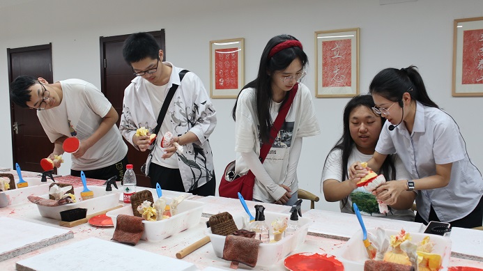 隨后,實踐隊成員又體驗了泰山非遺項目拓印。即使只有幾個簡單的字需要拓印,卻花費了許多時間,可見非遺傳承之辛苦。老師向實踐隊成員講授傳拓基本知識,展示各類拓片,親手教習隊員們傳拓技巧,讓隊員們在一個個字的拓摩中掌握傳拓的基本要領。