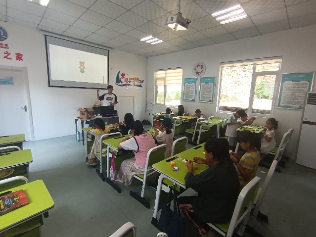 為進一步豐富同學們的課余生活,培養動手能力,8月3日下午,支教隊隊員曾一豪帶領同學們開展了“太空泥”手工課,利用一節課的時間,曾一豪與同學們共同完成了小老虎、小蛋糕等簡單作品的制作,同學們的專注力和動手能力得到了提高。