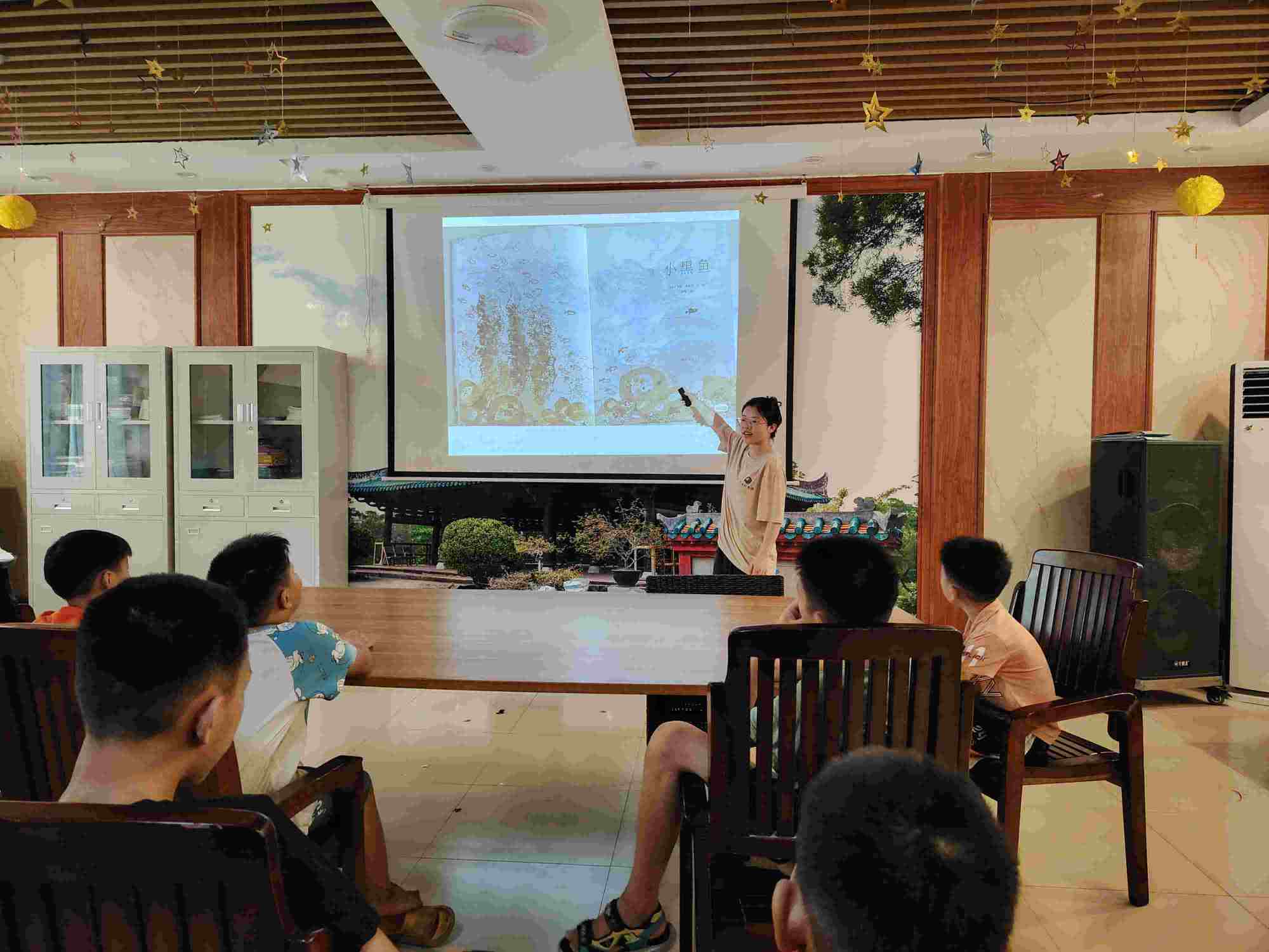 在繪本返家鄉實踐活動中,志愿者李盈盈同學針對福利院孩子們的情況,進行了一系列的繪本閱讀活動,旨在通過自身的宣講活動,讓孩子們感受到陪伴閱讀的溫暖。在7月14日共同閱讀了《我想要一顆月亮樹》,讓小朋友們感受到陪伴的力量。在7月19日共同閱讀了關于中國傳統文化的繪本《二十四節氣的故事》,讓孩子們了解到四季的節氣風俗,體會中國傳統文化的魅力。在7月23日共同閱讀了繪本故事《小黑魚》,通過一條小黑魚游歷海底世界,教會孩子們要學會勇敢與堅強。