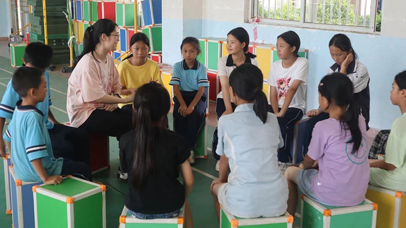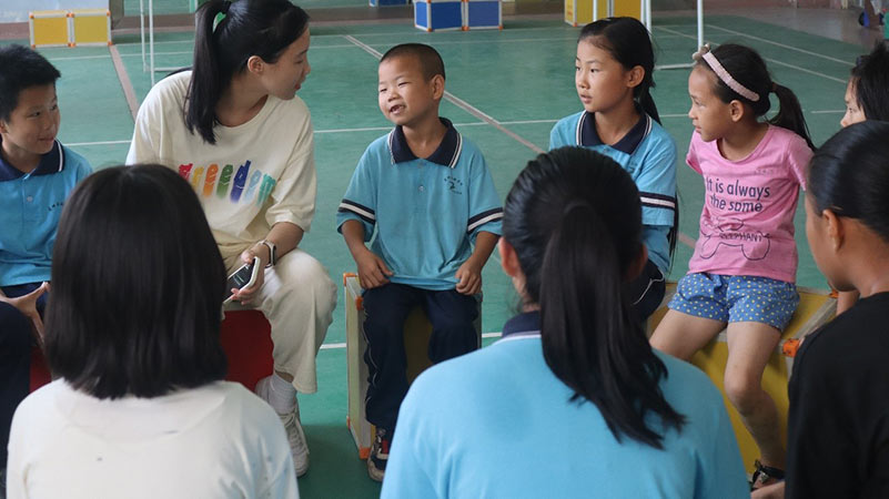 心理團輔導,拉近零距離 心理健康是幸福生活的基礎,而心理保育是幸福生活的基礎,為了關注留守兒童的心理健康,促進身心健康發展,實踐隊隊員給孩子們帶來了今日的最后一節課——“做 情緒的小主人”主題心理團輔活動。
