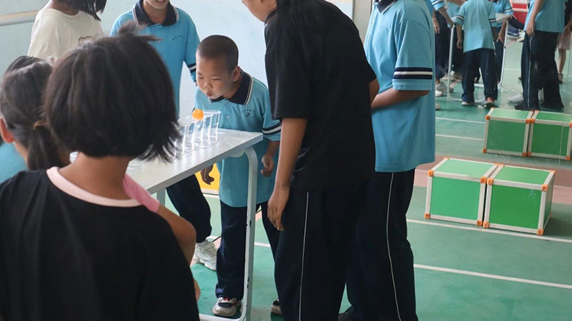 吹吹吹,吹走煩惱與壞情緒。孩子們分別組成了四個小隊,進行兩兩“吹乒乓球”的比賽,看哪個隊伍吹得又快又準。比賽驚險又刺激!隊員們都鼓足了勁在為比賽的選手加油鼓氣,一時間,加油聲、吶喊聲充滿了整個教室。