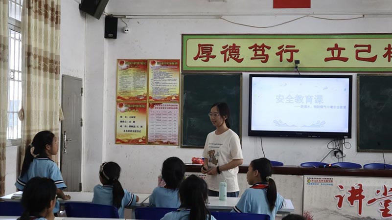 孩子們學習熱情持續高漲,實踐隊隊員緊接著對孩子們進行了預防煤氣中毒的教育科普,預防煤氣中毒的學習主要從煤氣中毒的癥狀、原因、如何預防煤氣中毒以及煤氣泄漏時的急救方法展開,通過理論宣講、動手實際操作提高學生的安全意識,提醒學生及時對存在的隱患進行排查,預防危險的發生,幫助學生鞏固對安全知識的掌握,保障學生的生命健康安全。