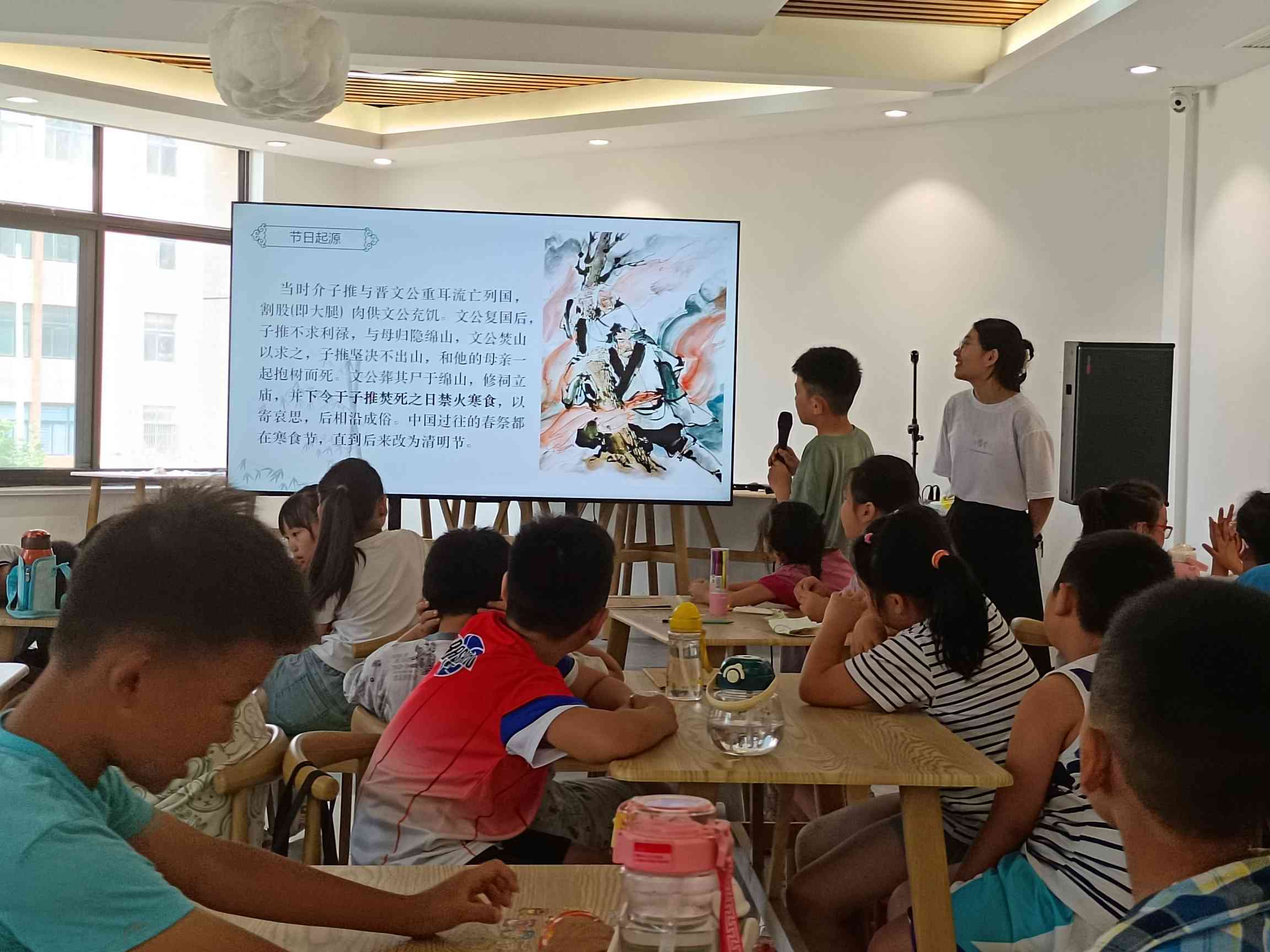 知識融入美食,快樂就會翻倍。支教隊隊員劉艷為孩子們帶來了《真味如初》。通過一首古詩引出寒食節(jié),從寒食節(jié)的起源、習(xí)俗、飲食與古詩四個方面,全面了解寒食文化。寒食節(jié)是介子推精神的精髓,是中華民族傳統(tǒng)道德的核心,更是維系民族和家庭團結(jié)的道德力量,對于孩子們世界觀的塑造具有重要意義。最為有趣的是,通過品嘗青團,讓孩子們在美食中了解寒食節(jié)飲食的獨特性。
