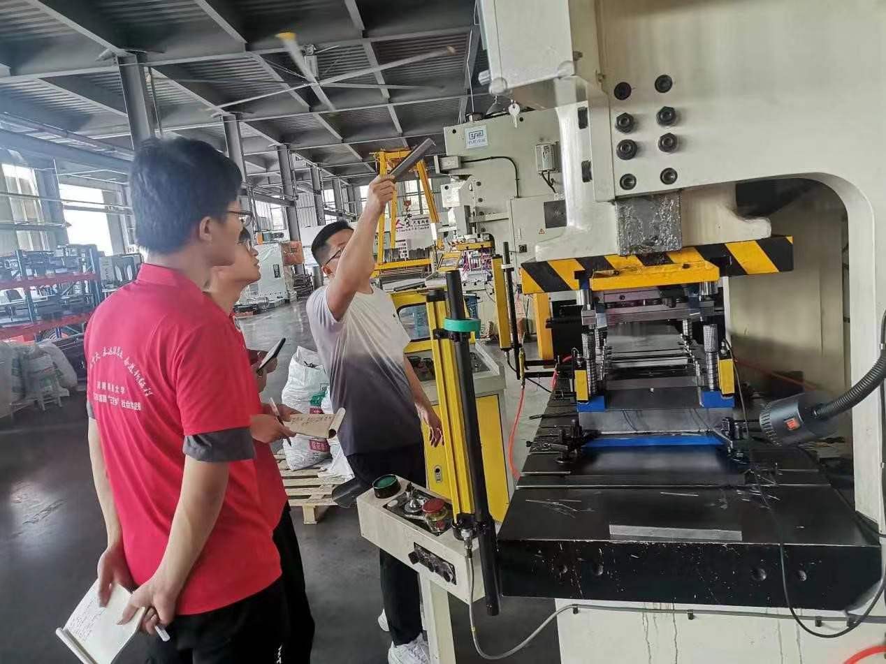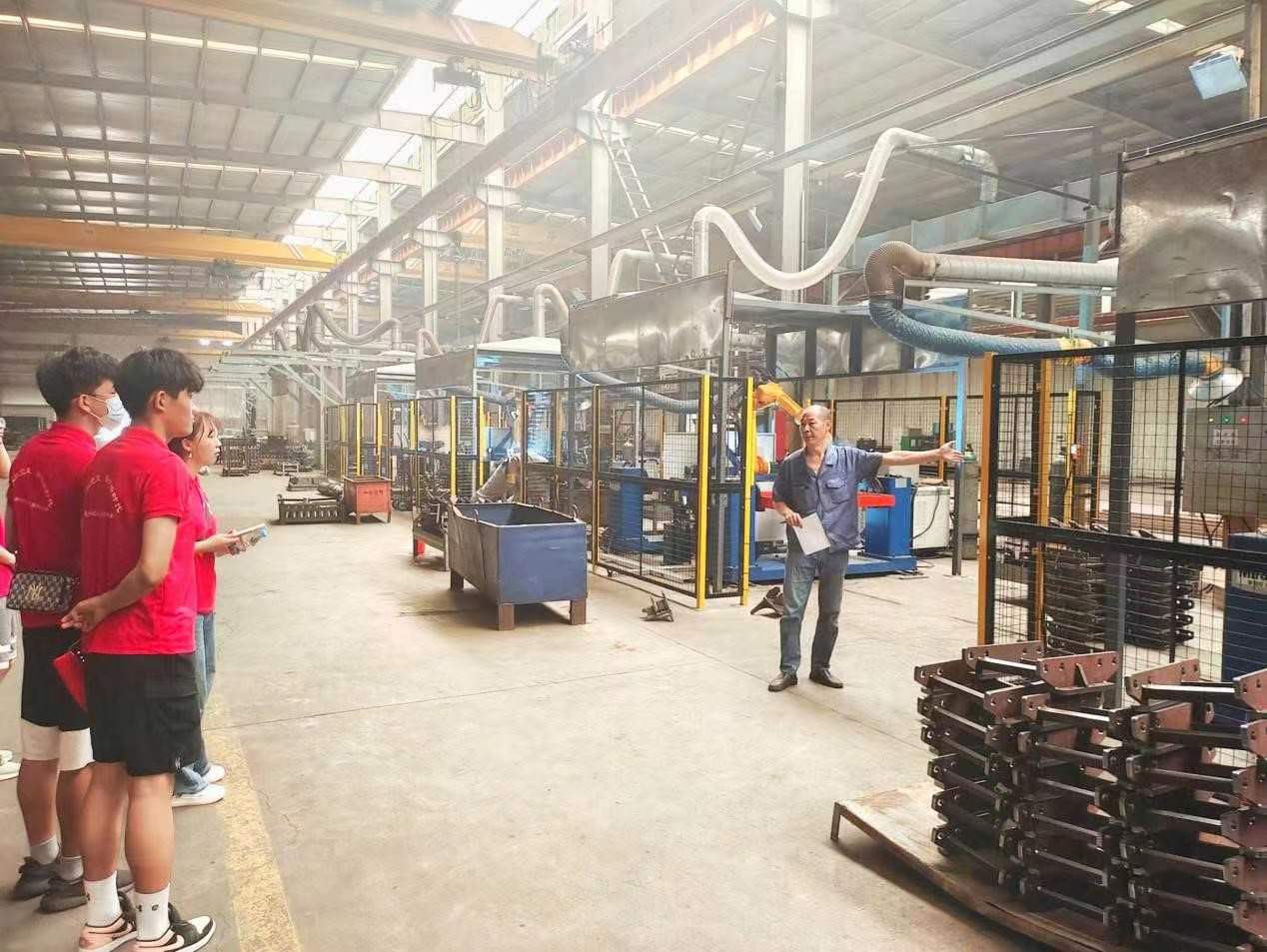 圖為工作人員向?qū)嵺`團隊介紹農(nóng)業(yè)裝備呢生產(chǎn)過程