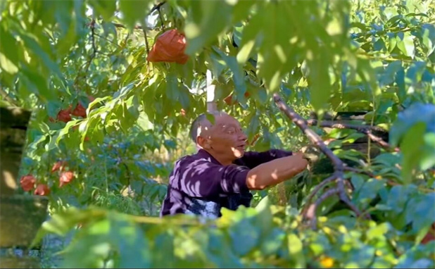 陡山村依托山區(qū)獨(dú)特的地理位置及氣候條件,大力推進(jìn)黃桃種植,發(fā)展集約規(guī)模化種植農(nóng)業(yè)。時(shí)間正值七月,正是陡山村千余畝黃桃成熟的時(shí)節(jié),在陡山村的黃桃采摘基地,團(tuán)隊(duì)開(kāi)展了以“小黃桃”促“大振興”黃桃采摘園體驗(yàn)活動(dòng)。在黃桃的果味清香中,團(tuán)隊(duì)成員們戴起基地提供的草帽,開(kāi)啟了黃桃采摘之旅。炎炎夏日,果農(nóng)爺爺細(xì)心地向成員們介紹黃桃采摘的注意事項(xiàng),“像這種軟硬適中、個(gè)頭中等偏大的黃桃最好吃,那種太硬的桃子是沒(méi)有成熟的,不要摘。”爺爺提醒道。在當(dāng)?shù)厝嗣袢缁鸬臒崆橹校瑘F(tuán)隊(duì)成員完成了黃桃采摘,摘下的黃桃個(gè)兒大、顆顆飽滿脆甜,詮釋著陡山村富硒黃桃的優(yōu)良品質(zhì),其間蘊(yùn)含著陡山村鄉(xiāng)村振興的累累碩果以及陡山人民欣欣向榮的生活。如今,全鎮(zhèn)黃桃基地已經(jīng)由當(dāng)初的百余畝發(fā)展到如今的五千余畝。此外,村里還種植了碧根果、鐵山板栗等本地特色作物,通過(guò)線上線下齊銷售、開(kāi)發(fā)生態(tài)果園采摘園等方式,為農(nóng)民帶來(lái)了可觀的收入。