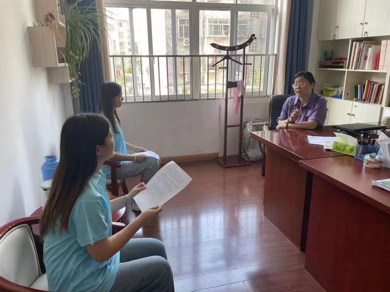 此次實地調研的池州市婦女兒童活動中心成立于2001年,一代代中心人秉承“服務兒童,呵護未來”的宗旨,以打具有影響力的兒童服務平臺為奮斗目標,是兒童教育關愛的排頭兵。我隊在隊長陳玉婧的帶領下走進活動中心對活動中心相關負責人就心理健康視角下相關教育關愛活動的開展狀況及對當地青少年的影響等問題進行了深入的調研采訪。
