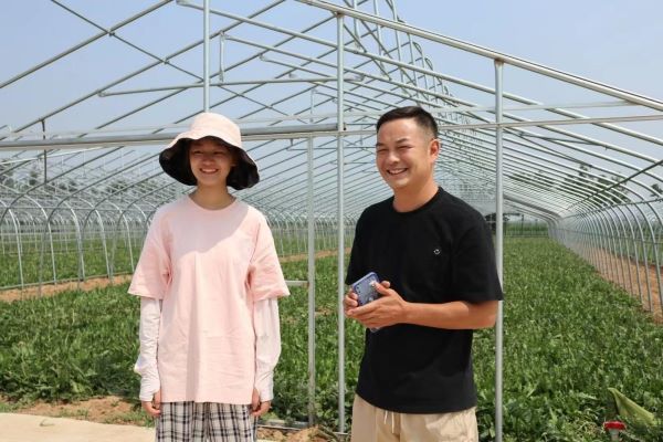 圖為負責人與調研人員在種植基地愉悅交談的場景 多彩大學生網通訊員 劉姝均 供圖