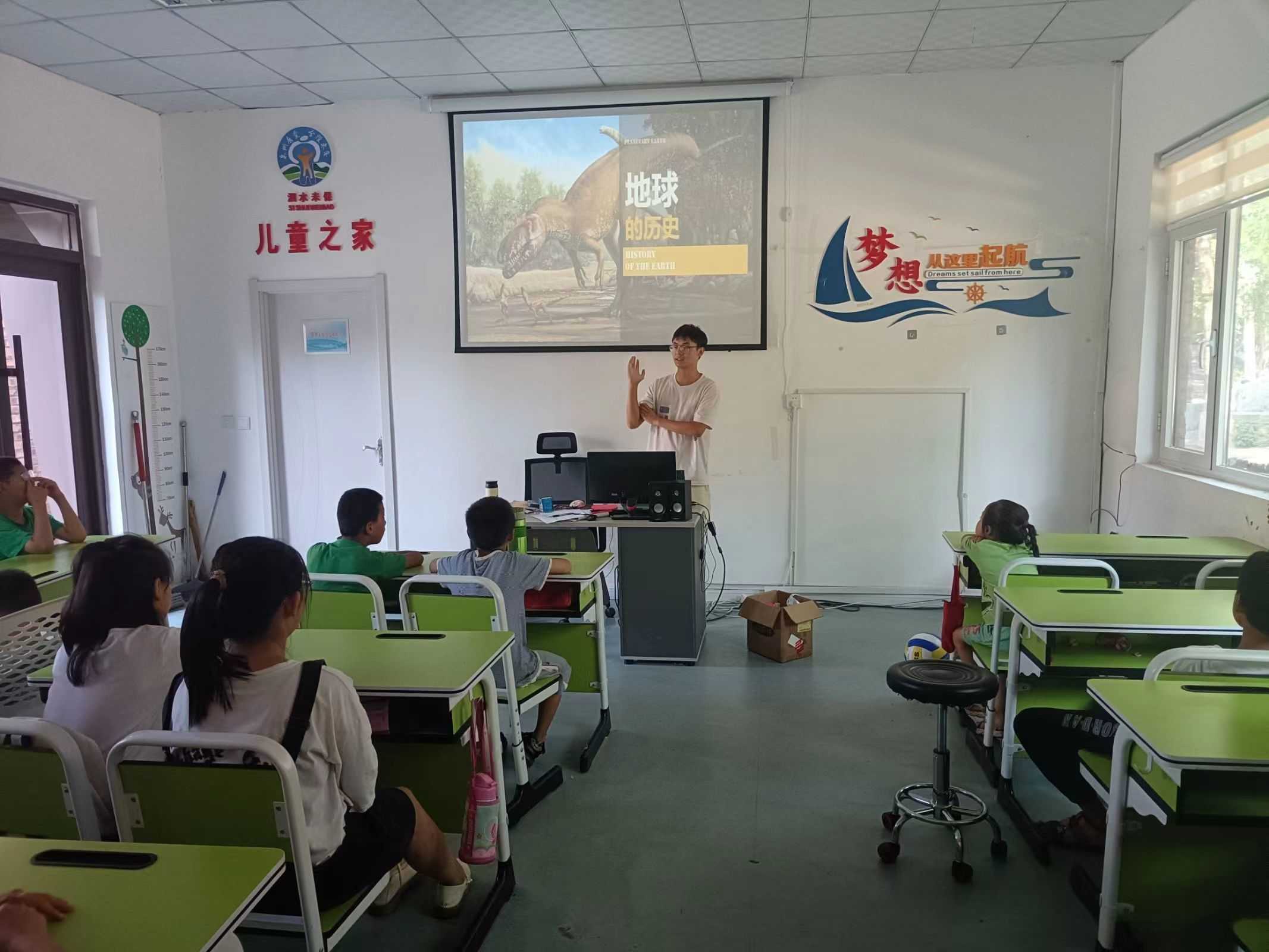 150億年前宇宙誕生,奠定了地球產(chǎn)生的物質(zhì)基礎(chǔ)。上周,支教隊員曾一豪主講的“地球的宇宙環(huán)境”課程激發(fā)了同學(xué)們對于宇宙的濃厚興趣。為進(jìn)一步延伸同學(xué)們的天文興趣,更深入地了解相關(guān)知識,曾一豪在8月7日上午第一節(jié)開展了“地球的發(fā)展歷史”趣味課堂。本節(jié)課延續(xù)了上節(jié)課的風(fēng)格,通過展示豐富的圖片與影視資料,帶領(lǐng)同學(xué)們領(lǐng)略46億年的地球歷史,特別是在展示恐龍時代時,引來了同學(xué)們的陣陣驚嘆。通過本節(jié)課的講述,同學(xué)們對地球的演變和人類的進(jìn)化有了初步的認(rèn)識。