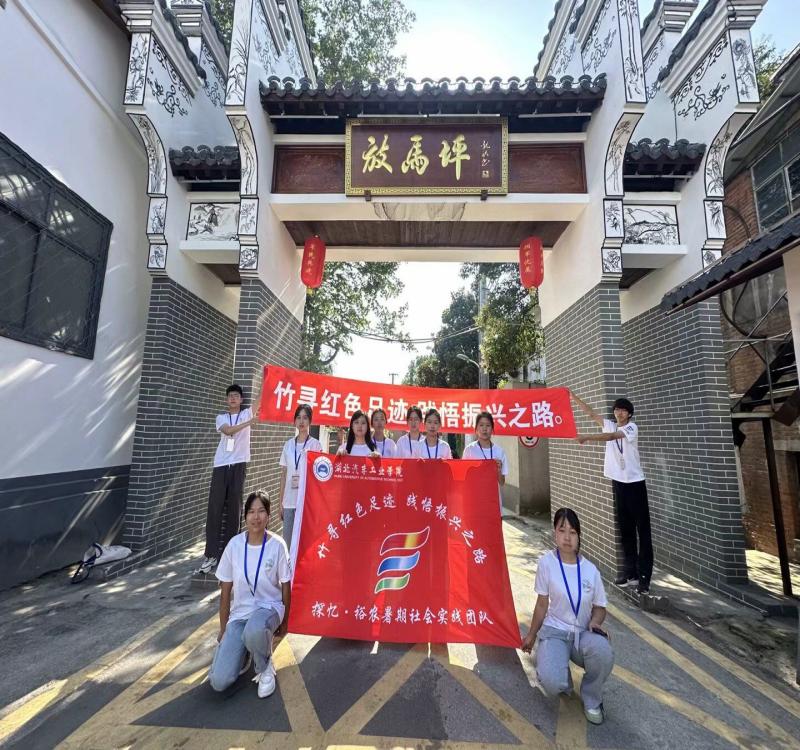圖為實(shí)踐隊(duì)員在放馬坪門口合影。