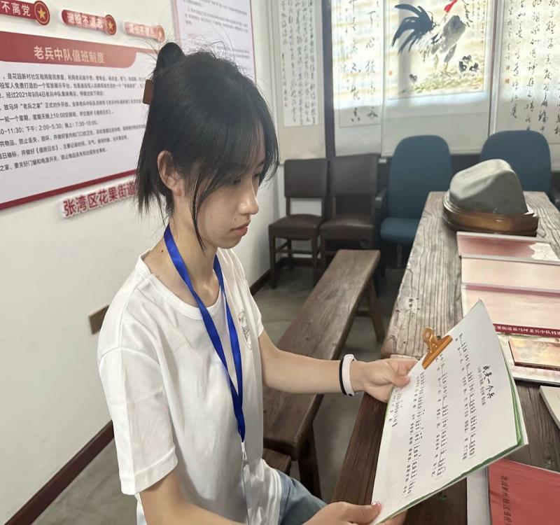 圖為實(shí)踐隊(duì)員參觀老兵之家。