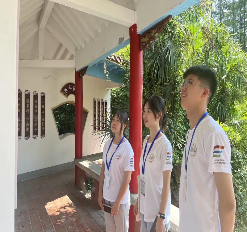 圖為實(shí)踐隊(duì)員參觀竹壺幽居。
