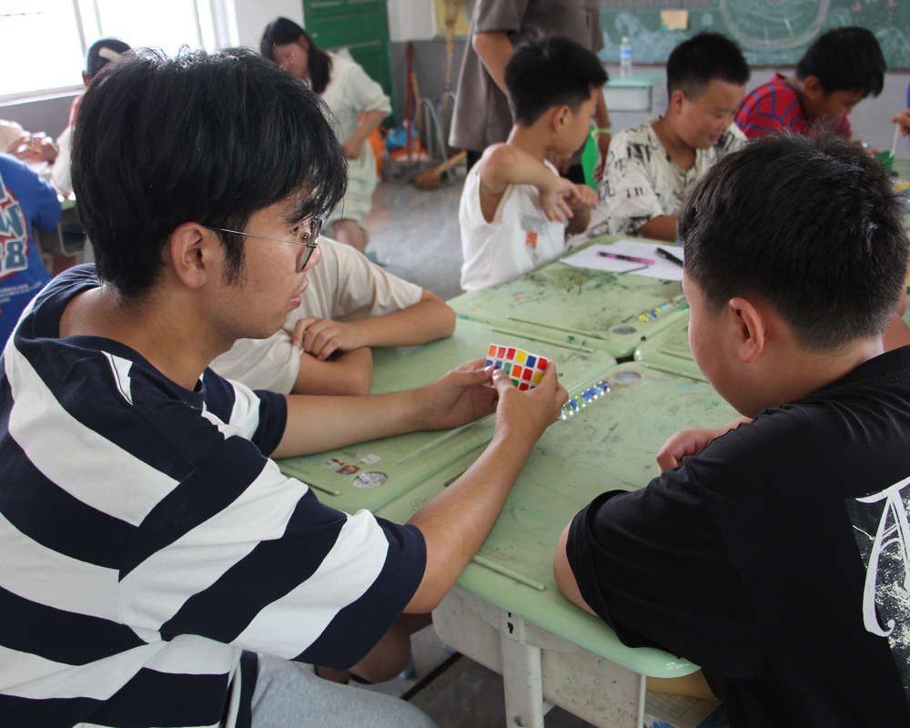 志愿者在課余時間教孩子們拼魔方鍛煉思維 王心怡攝