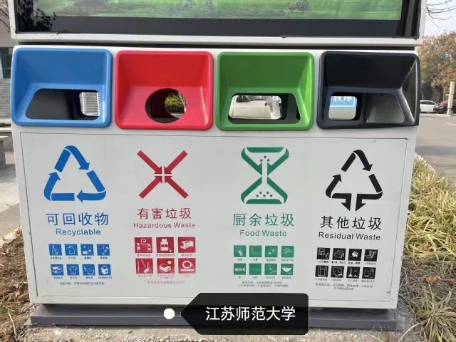 在2023年6月21日至2023年7月31日期間,我們小分隊實地走訪調查了江蘇省內的一部分高校(其中包括:江蘇師范大學、徐州醫科大學、徐州工程學院、常熟理工學院、宿遷學院、南通大學、南京傳媒學院、南京工業職業技術大學……),經過調查分析,我們發現包括本校在內的絕大部分高校都是間隔30-50米設置垃圾桶,垃圾桶也進行了簡單分類,便于同學分類投放垃圾。絕大部分高校都是設置兩類垃圾桶,即可回收垃圾與不可回收垃。但值得贊揚的學習的是江蘇師范大學,它定點設置四類垃圾桶,即可回收、廚余、有害、其他四類垃圾桶,將垃圾分類貫徹于學生的日常生活。同時我們經過走訪調查,了解到所有高校的實驗室垃圾都是單獨處理的,既符合實驗室規定也保障了學生老師們的人身安全。