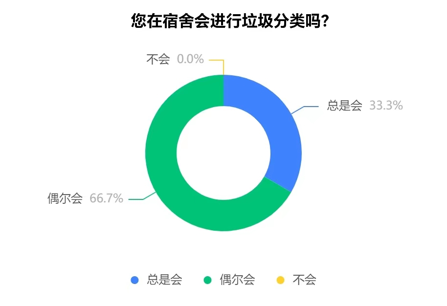 我們也在各高校內隨機采訪了一些同學,并邀請他們填寫有關宿舍垃圾分類的調查問卷。經調查總結得出絕大多數同學會在日常生活中以及宿舍進行簡單的垃圾分類,經了解,大部分同學主要將宿舍垃圾進行可回收垃圾與不可回收垃圾分類;同時基本所有同學都了解一些有關垃圾分類的知識;宿舍內垃圾桶與宿舍外垃圾桶也大多會每天都進行清理,衛生問題相對良好。