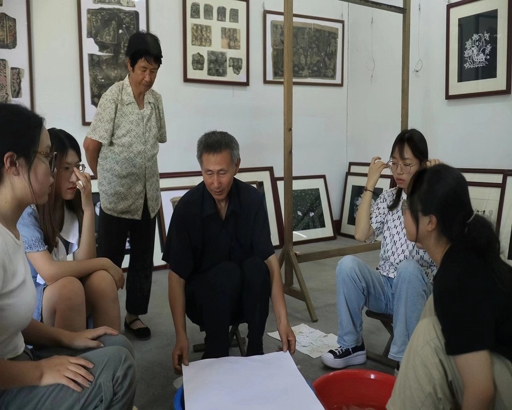艾松林老師講解熏畫制作過(guò)程,團(tuán)隊(duì)成員認(rèn)真聽(tīng)講(周逸馳 攝)