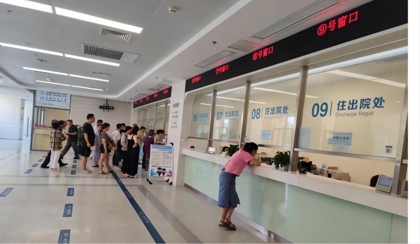 小組成員先是走訪了離市中心最近的第二人民醫院,進入醫院可以看到兩排自助服務機,提供預約、掛號、繳費等綜合的服務,右側有人工窗口但是午休和夜間并不開放二樓各科室的取報告則都采取自助服務的形式沒有人工窗口。由于該醫院整體電子化程度較高,但協助老年人完成電子化業務的工作人員少且醫院科室分布也較為分散,有索引告示但因醫院較大告示起的作用較小,仍然會有尋找科室困難的問題,這類醫院的老年人等群體就很需要有人引導協助完成就診,陪診服務在市區大醫院能有輔助使用電子化配套醫療設施和流程指引的重要作用。
