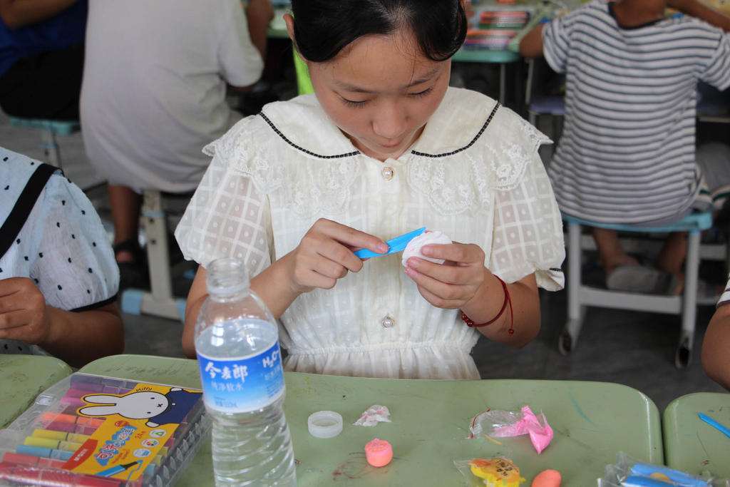 為激發學生學習興趣,增強課堂趣味性,志愿者為學生帶來超輕黏土,開啟“夢想蛋糕我來做”活動。志愿者結合自身經歷,于課堂上演示“夢想蛋糕”制作方法,啟發學生用心思考與尋找自己的夢想,將其用彩泥與模型的形式表現出來。該活動在推進課程主題思想發展的同時,也鍛煉了學生的想象力與動手操作能力,使課堂氛圍更加輕松愉快。
