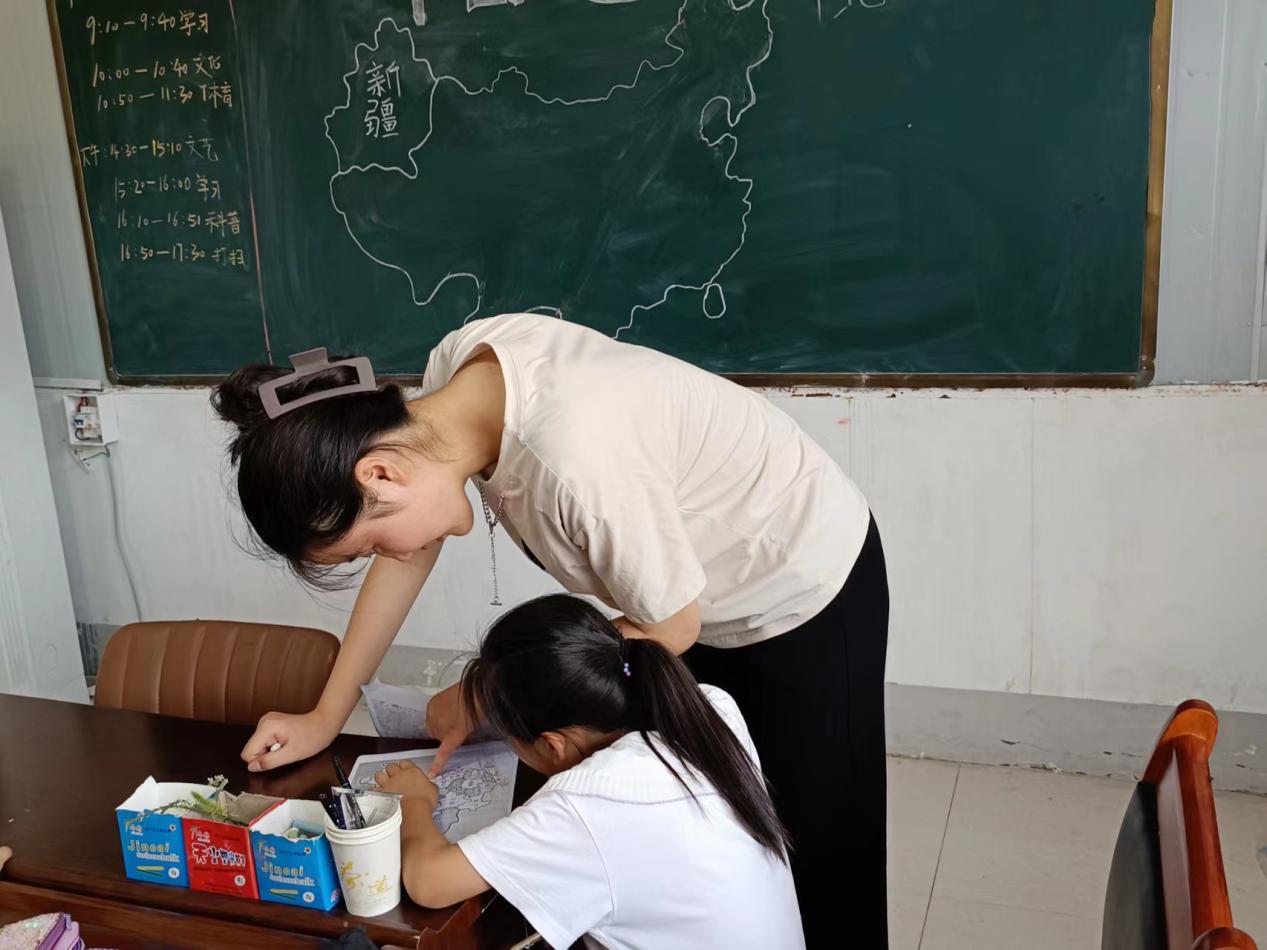 團隊成員不僅認真教給孩子知識和學習方法,還與孩子們建立了親密溫馨的關系。事實無人撫養兒童長時間缺少父母的陪伴和關愛,內心較為脆弱敏感。團隊成員十分重視提升孩子們的心理素質,教學和活動的開展都注重跟心理健康教育工作相結合,引導孩子們形成樂觀開朗的性格。隨著支教活動的推進,團隊成員與孩子們之間變得越來越熟悉,關系也越來越親密。孩子們慢慢敞開了心扉,變得樂觀、陽光。