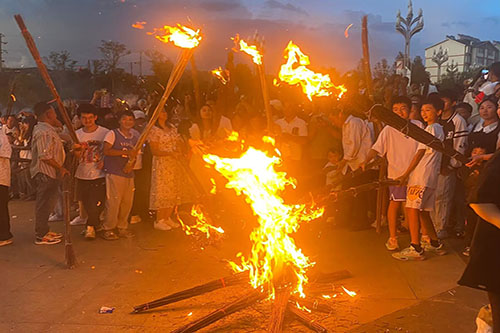 (圖為火把節火把燃燒場景)