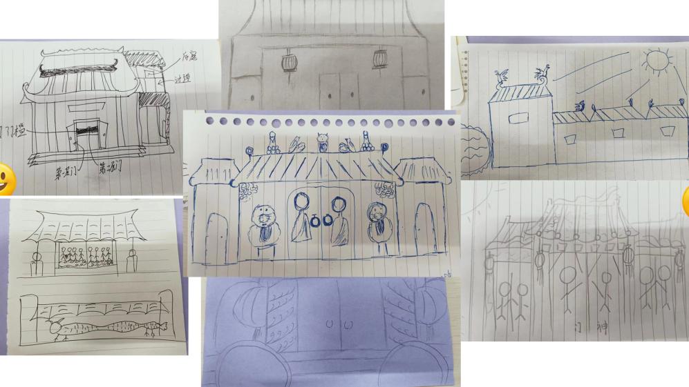 “家國春秋——共探潮汕宗祠建筑”課程由隊員林慧婷主講,以呈現(xiàn)潮汕宗祠建筑特色的視頻為出發(fā)點,引出對潮汕宗祠建筑歷史和特點的探索,設計豐富的課堂問答環(huán)節(jié)協(xié)助學生更好地記憶。同時,在課程最后設置“小組協(xié)作繪制體現(xiàn)本節(jié)課所講的潮汕宗祠特點的宗祠建筑”環(huán)節(jié),通過小組合作的方式調(diào)動組內(nèi)成員的積極性,發(fā)揮各自的主觀能動性,采用手繪的方式加深學生對知識點的印象和理解。通過本次課程,學生加深了對潮汕建筑文化的理解,最后,希望學生在本節(jié)課過后對潮汕建筑文化有更深的了解,也體會潮汕建筑的細致精美和工藝人的心靈手巧,成為了潮汕建筑文化的小宣傳員。