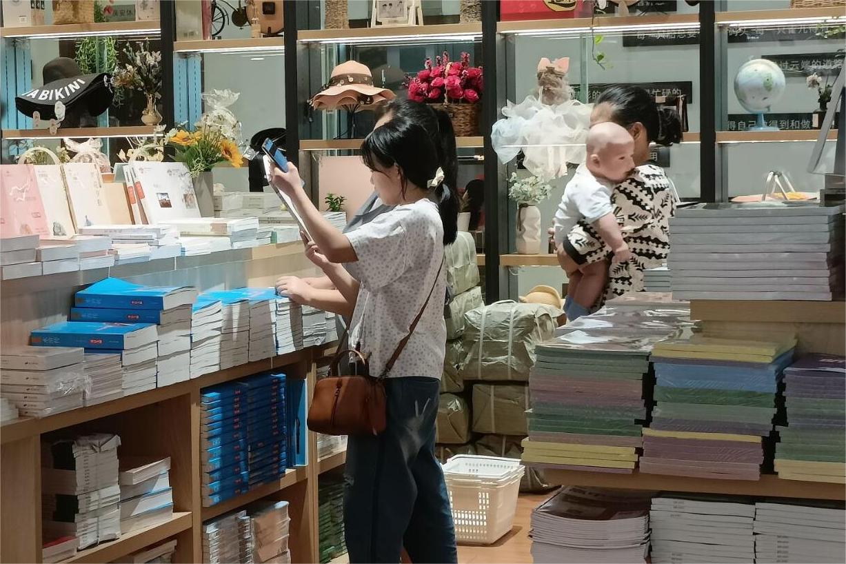 圖為實(shí)踐隊(duì)員在給家長(zhǎng)推薦書(shū)籍。
