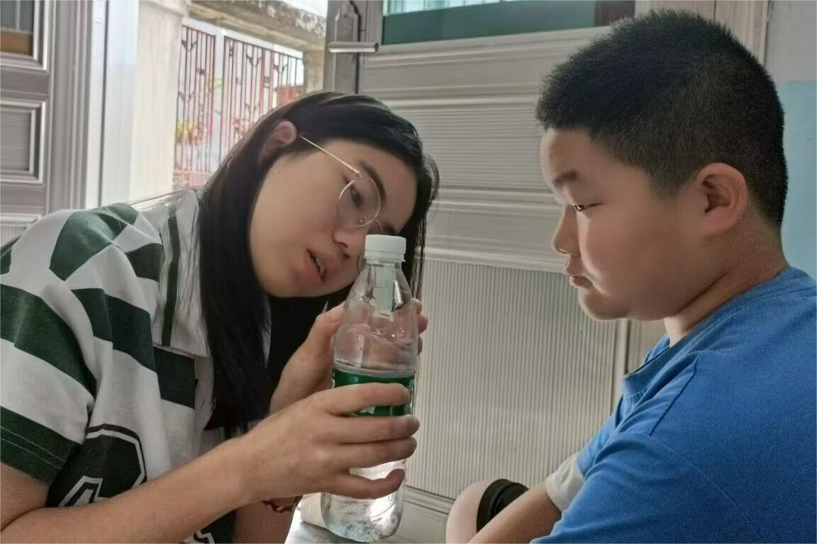 圖為實踐隊員在給學生講解浮沉子原理和制作。