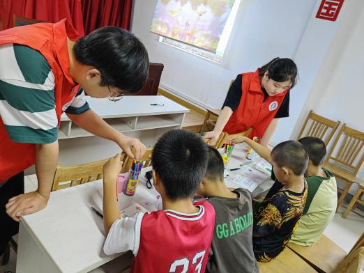 7月21日,志愿者們帶領兒童在多彩的世界里遨游,讓孩子們用畫筆為自己畫出自己心目中的繽紛世界。正確的三觀會幫助孩子養成積極、樂觀的心態,讓孩子能夠面對挫折和困難時堅強、樂觀地面對,使孩子在成長過程中更加自信,有助于他們更好地應對生活中的挑戰。在畫畫過程中,志愿者們同當地小學生進行了深入的談心,幫助孩子們樹立正確的世界觀、人生觀、價值觀。