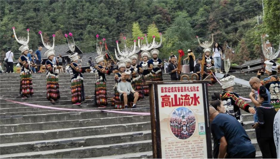 圖為千戶苗寨迎接游客的“高山流水”禮儀展示(凌可 攝)