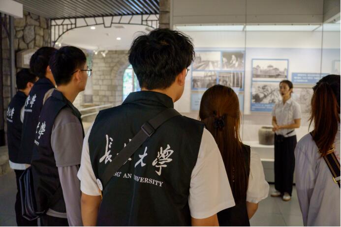 圖為長(zhǎng)安大學(xué)赴山東淄博“探數(shù)字賦能,助鄉(xiāng)村振興”暑期社會(huì)實(shí)踐隊(duì)傾聽講解員的講解